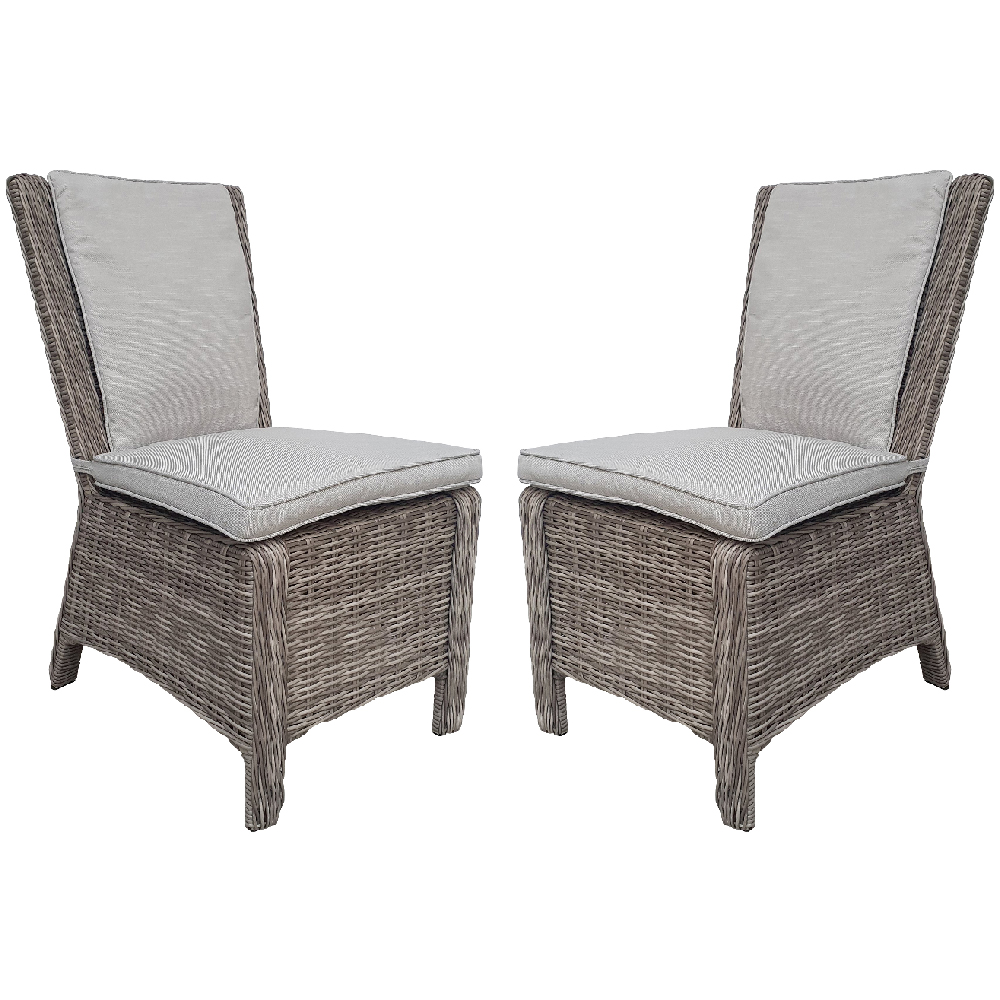 Abobo Grey Rattan Dining Chairs With Cushions In Pair