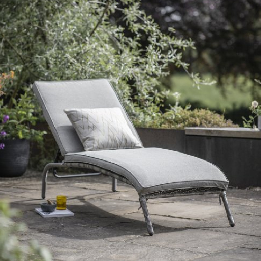 Marfa Rattan Garden Sun Lounger With Cushion In Stone