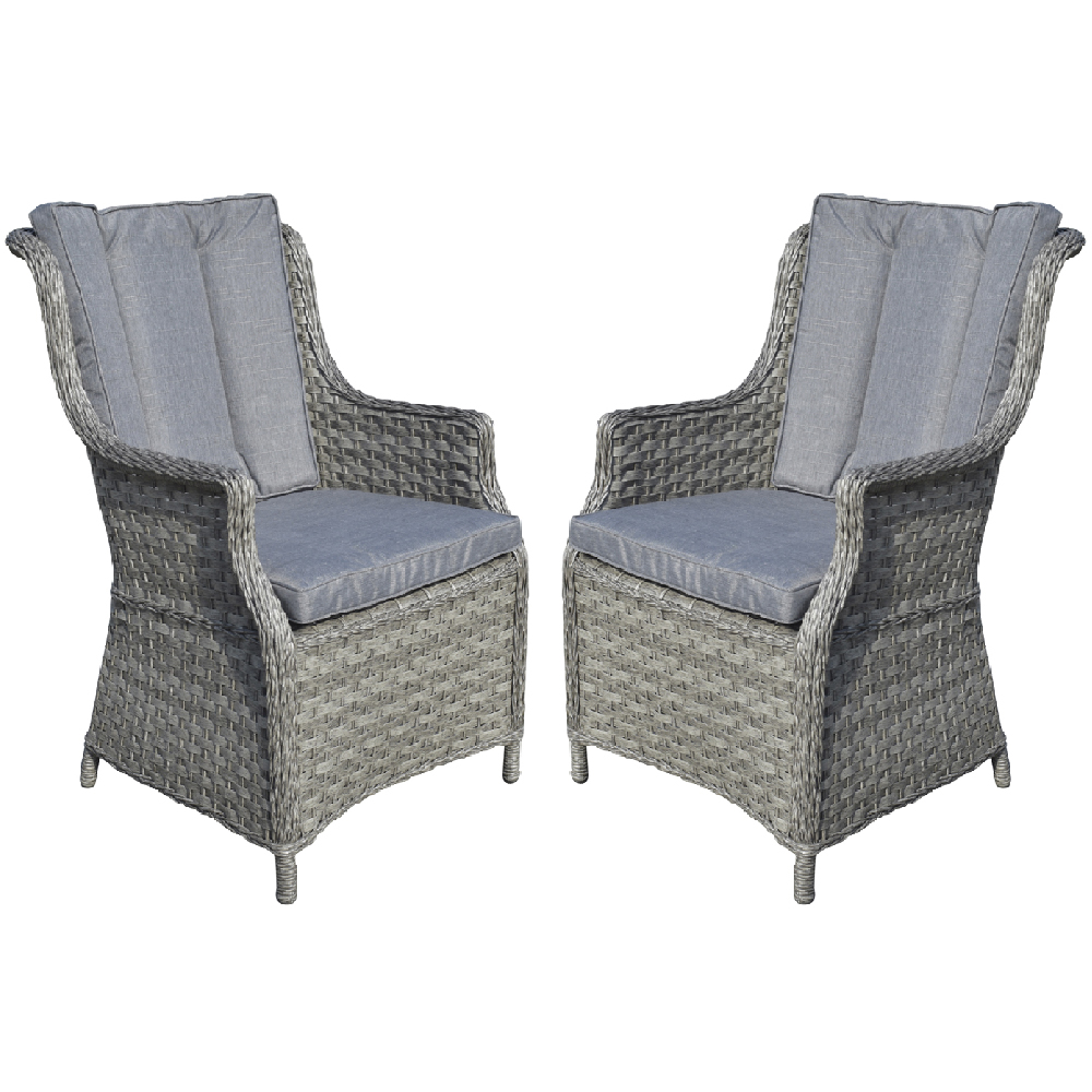 Vernal Grey Rattan Garden Dining Chairs With Cushion In Pair